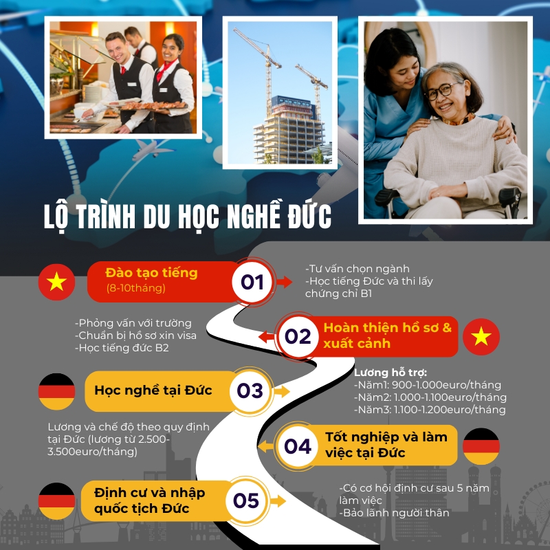 Du học nghề tại Đức là con đường mở ra nhiều cơ hội cho các bạn trẻ Việt Nam vừa học tập, vừa làm việc trong môi trường chuyên nghiệp tại châu Âu. Chương trình kết hợp song song học lý thuyết tại trường nghề và thực hành hưởng lương tại doanh nghiệp, giúp học viên có thu nhập ổn định ngay từ khi còn ngồi trên ghế nhà trường.