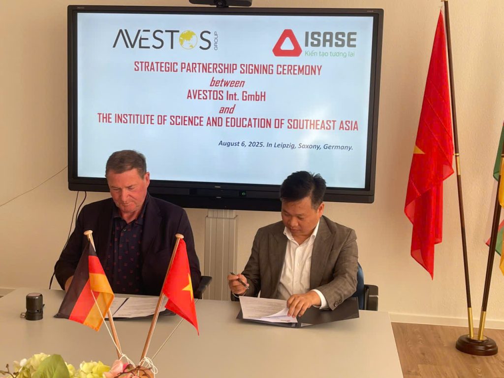 Leipzig, Đức – Ngày 06/08/2025, một cột mốc quan trọng đã được thiết lập trong hành trình quốc tế hóa giáo dục nghề nghiệp và phát triển nguồn nhân lực chất lượng cao cho thị trường Đức. Viện Khoa học và Giáo dục Đông Nam Á (ISASE) và Tập đoàn AVESTOS GmbH – một tổ chức đào tạo nghề hàng đầu tại CHLB Đức – đã chính thức ký kết Biên bản Ghi nhớ Hợp tác chiến lược (MOU) tại thành phố Leipzig, bang Sachsen, CHLB Đức.